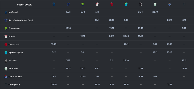 2025-10-08 19:05:002025-10-08, 19:05 | Rycerze z Jadownik  | - | Sąsiedzi Sipiory | Brak danych | 1 |